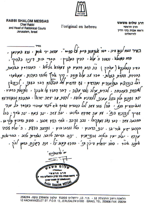 Chief Rabbi and President of the courses of Justice of Jerusalem